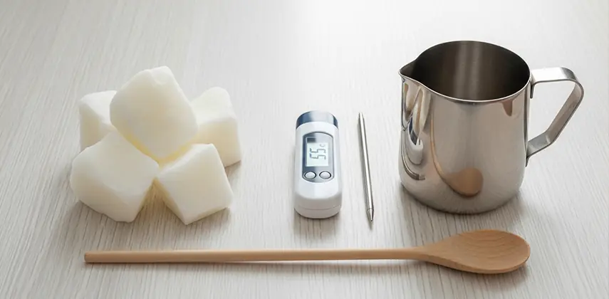 Bu işi doğru yapmak için sadece birkaç basit alete ihtiyacınız var. Pahalı endüstriyel ekipmanlara gerek yok. Eksiksiz bir başlangıç için mum yapım malzemeleri listemize göz atabilirsiniz.