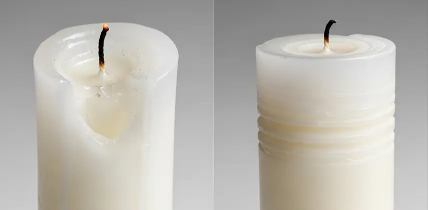 Öte yandan, fitilin etrafında derin bir çukur oluşmuşsa veya yüzey içe çökmüşse, parafini kesinlikle çok sıcak dökmüşsünüzdür.
